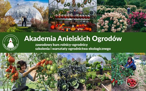 Akademia Anielskich Ogrodów to program edukacyjny łączący Kwalifikacyjny Kurs Zawodowy KKZ „Zawód Ogrodnik” oparty na podstawie programowej Ministerstwa Edukacji Narodowej OGR.2 z kursami online, warsztatami i pokazami w certyfikowanym gospodarstwie ekologicznym. Uczestnicy zdobywają państwowe kwalifikacje oraz praktyczne umiejętności w zakresie ekologicznej uprawy warzyw, owoców, ziół i zakładania ogrodów jadalnych.